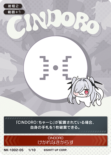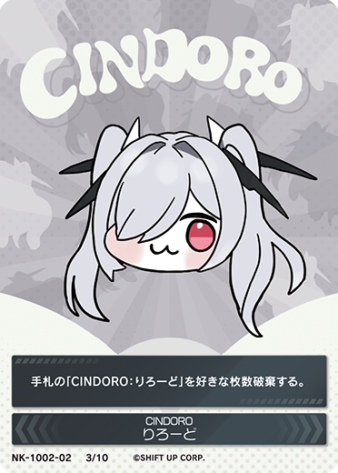 | NK-1002-02 CINDORO:りろーど | RL | 手札の「CINDORO:りろーど」を好きな枚数破棄する。 | 3/10 |