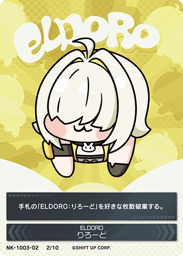| NK-1003-02 ELDORO:りろーど | MG | 手札の「ELDORO:りろーど」を好きな枚数破棄する。 | 2/10 |
