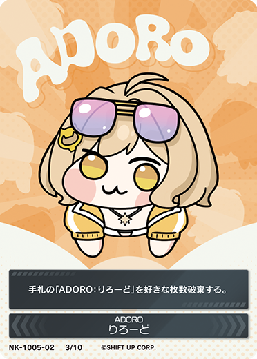 | NK-1005-02 ADORO:りろーど | RL | 手札の「ADORO:りろーど」を好きな枚数破棄する。 | 3/10 |