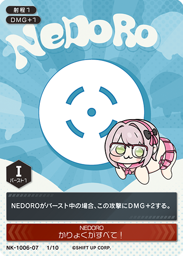 [バースト : Ⅰ] NEDOROがバースト中の場合、この攻撃にDMG+2する。 |